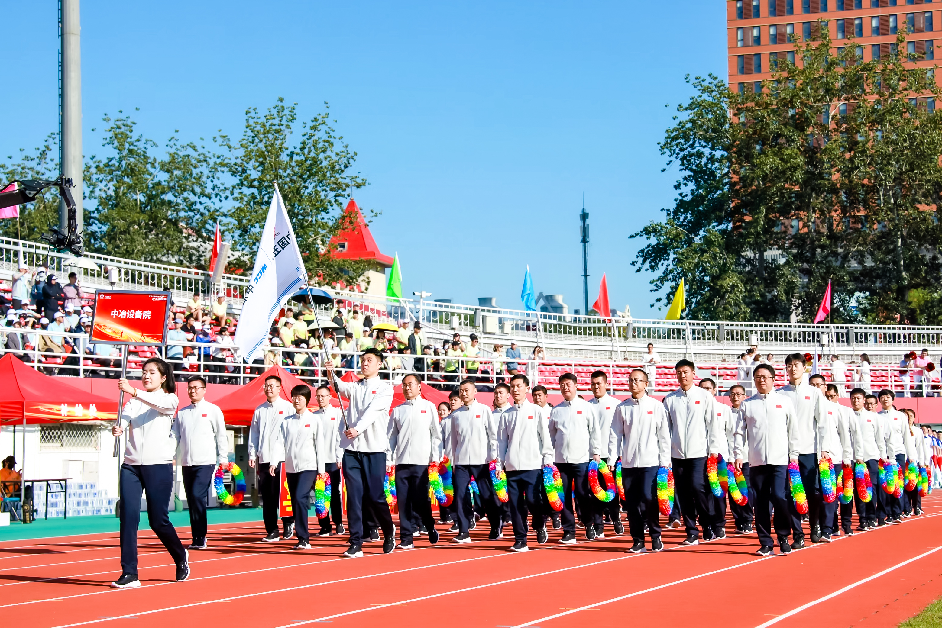 中冶設(shè)備院全體班子成員、各部門各單位運動健兒共計70余人參加此次運動會。開幕式上,公司方陣步伐鏗鏘、意氣風發(fā),“創(chuàng)新引領(lǐng)、勇攀高峰”口號響徹碧空,隊員們手擎七彩花環(huán)明艷律動,同心共賀集團公司75周年華誕。